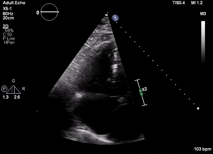 - Involves am M-mode at the base of the RV to assess tricuspid annular motion